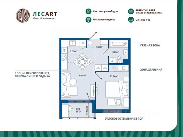 * Инфраструктура: Все, что нужно для жизни, рядом: круглосуточный гипермаркет "Лента" и "Леруа Мерлен" в шаговой доступности.