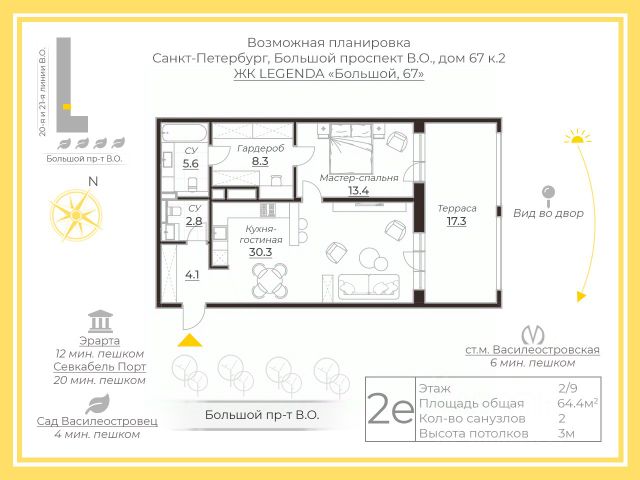 Дом РЕГЕНБОГЕН расположен на 7-й линии Васильевского острова. Это одна из старейших улиц Петербурга длиною в 20-минутную прогулку от Университетской набережной до набережной реки Смоленки. В пешей доступности 2 станции метро: Василеостровская (700 метров) и Спортивная (800 метров). Не далее 5-20 минут пешком от РЕГЕНБОГЕНА престижные ВУЗы: СПбГУ, РАНХиГС, ИТМО, РПА Минюста РФ, Академия художеств. Чуть дальше Горный институт. Жить в исторической части Васильевского острова значит всегда быть в окружении искусства от актуальной современности в Эрарте до великой классики в Эрмитаже. В шаге от дома популярнейший гастрокластер Василеостровский рынок, рядом креативные общественные пространства: Вавилов Лофт, Новая Голландия и Севкабель Порт. РЕГЕНБОГЕН строится на территории, ранее принадлежавшей заводу им.Козицкого, до революции заводу Siemens & Halske. Классические заводские краснокирпичные здания сформировали архитектурную концепцию жилого дома. РЕГЕНБОГЕН будет гармонично включен в контекст исторической застройки благодаря переменной этажности секций в 5, 7 и 9 этажей и фасадам из кирпича ручной формовки. Образ дома дополнят черные композитные панели и декоративные элементы из металла, как аллюзия на промышленную архитектуру начала ХХ века. В РЕГЕНБОГЕНЕ большой выбор небольших квартир студий (от 28 м2), 1-комнатных (от 34 м2) и евродвушек (от 43 м2). Есть квартиры с европланировками на 2, 3 и 4 спальни. Во всех квартирах предусмотрены места для установки шкафов или гардеробные или кладовые. Лоджии и балконы остекленные, есть квартиры с террасами. Все окна с увеличенной высотой проема, а в квартирах на верхних этажах стеклянные панорамные стены. В Доме будет выполнена качественная инженерная подготовка бизнес-класса: эл.мощность от 10 до 16 кВт на квартиру, многоступенчатая система доочистки воды, принудительная вытяжная вентиляция, предусмотрены места для установки кондиционеров с подключением к стоякам отвода конденсата. В подземный паркинг можно будет спуститься на лифте, есть кладовые помещения. Двор без машин, гостевая парковка и зарядка для электромобилей на внешнем периметре дома. Озеленение двора в стиле травяного сада, газоны и цветники с автополивом, разработана концепция архитектурной и ландшафтной подсветки. 1-комнатная квартира рядом с метро Спортивная.