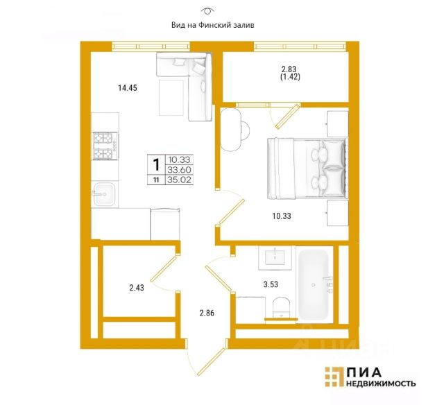 Продается 1-комн. квартира с предчистовой отделкой в ЖК "Новая Земля" на 11 этаже. Общая площадь: 30.19 кв.м., жилая: 7.85 кв.м., площадь просторной кухни-столовой: 16.79 кв.м. Все окна выходят на одну сторону. В квартире один совмещенный санузел. Высота потолков 2.85 м.