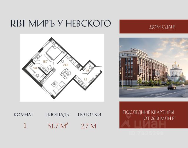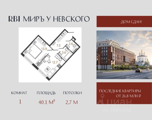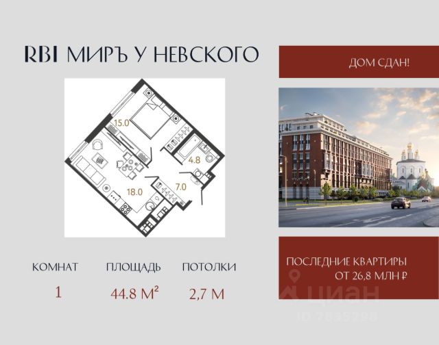 Клубный дом "МИРЪ" в самом центре Петербурга — воплощение идеальной картины мира для истинных ценителей прекрасного. Дом строится на Миргородской улице, в двух шагах от Невского проспекта и Московского вокзала. Из окон квартир приятно созерцать красоту Феодоровского собора и вдохновляться захватывающей панорамой Петербурга. В шаговой доступности — метро "Площадь Восстания", крупные торговые центры и "Старо-Невский" проспект с бутиками мировых премиум-брендов. Утром достаточно выйти из парадной, чтобы через 5 минут расположиться в кресле "Сапсана" и с комфортом добраться до Москвы. Путь до КАД и ЗСД на автомобиле займёт не более 15 минут, до аэропорта "Пулково" — полчаса. Камерная атмосфера создаётся за счёт деления на два корпуса и небольшого количества квартир в доме — их всего 263. Корпуса объединены триумфальной аркой, которая формирует закрытый контур внутреннего двора. Статус дома подчеркивают парадные холлы с арочными пролётами, витражным остеклением и произведениями искусства. Автомобилисты смогут спуститься в подземный паркинг на лифте прямо со своего этажа. Гостевую стоянку организуют вне комплекса — чтобы не нарушать безопасность двора. Для жителей в доме появится приватный фитнес-зал. Также в большом корпусе появится муниципальный детский сад с собственной игровой площадкой за пределами камерного пространства дома. В каждой парадной — просторные колясочные. Велосипеды вы сможете оставить на оборудованных велопарковках. Во внутреннем дворе появится живописный сквер, а в центре появится своеобразная "зелёная комната" с воздушным навесом и обогревателями. Детские игровые зоны воплощают природные формы и выполнены из экологичных материалов. В южной части двора расположится амфитеатр с отделкой из натурального дерева. Свободный Wi-Fi позволит подключиться к работе онлайн прямо во дворе или из парадных холлов. Территория дома полностью огорожена и охраняется круглосуточно. Войти в парадные можно только со стороны внутреннего двора по бесконтактному электронному ключу. Спланировать встречу гостей легко и удобно через специальное приложение для жителей. Площадь квартир варьируется от 26 до 146 м². Планировки с просторными кухнями-гостиными, мастер-спальнями, которые предусматривают отдельный санузел и выделенную гардеробную. А квартиры на верхних этажах дома с трёхметровыми потолками, панорамными окнами и видовыми террасами, откуда обозревается исторический центр города. Продается 1-комнатная квартира на улице Миргородская в Санкт-Петербурге.