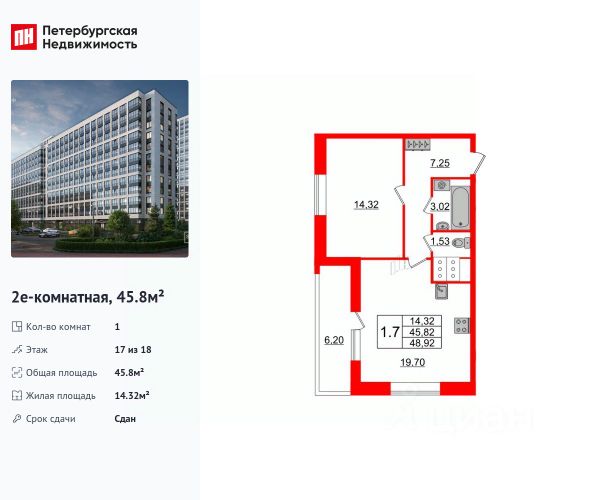 Цена со скидкой до 30% в прямой продаже от застройщика — только в этом месяце. На апартаменты действует беспроцентная рассрочка. Роскошные виды на Неву. 1-к апартамент в комплексе класса бизнес-лайт Зум на Неве на 4-м этаже. Общая площадь 35,7. Предчистовая отделка. Зум на Неве расположен в новом месте силы рядом с центром города на первой линии Октябрьской набережной в Невском районе, всего в 7 км от исторической части Санкт-Петербурга. Большой выбор эргономичных и максимально продуманных планировок позволит каждому найти вариант по душе. Панорамные виды на Неву, благоустроенные дворы, детская игровая комната, подземный паркинг, коммерческие зоны на первом этаже, это и многое другое делает Зум на Неве идеальным местом для жизни. Особенности: - Панорамные виды на Неву и город; - 10 мин. до Парка Строителей, 15 мин. до Лондон-молла, Ленты, Максидома, 15 мин. до метро "ул. Дыбенко", 12 мин. до КАД, 10 мин. до центра; - Единая архитектурная концепция. Сдержанные и монументальные фасады в неоклассическом стиле; - Парадный лобби для жильцов. Единый вход в комплекс с администратором, зоной ресепшн и охраной, зоной для бесконтактной доставки посылок и еды; - Подземный отапливаемый паркинг с доступом из парадной; - Доступно 3 варианта отделки на выбор: черновая, предчистовая (White Box) и чистовая; - Зоны отдыха для взрослых и детей, Wi-Fi-покрытие во дворе и в паркинге, зоны для питомцев, арт-объекты и много другое. В шаговой доступности вся необходимая инфраструктура от детских садов и школ до супермаркетов и салонов красоты; - Все происходящее контролируется видеокамерами, а покой внутренней территории и безопасность ваших детей гарантируется полным отсутствием транспорта во дворах в концепции "без машин". Продается 1-комнатная квартира в округе Невский в Санкт-Петербурге.