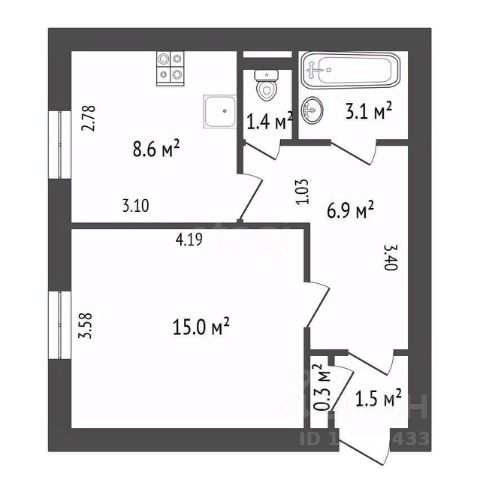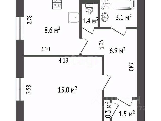Просторная квартира общей площадью 41,1м2 с продуманной планировкой, обеспечивающей комфорт и функциональность