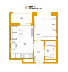 Общая площадь по ЕГРН 36.7 м2, просторная кухня гостиная 16.8м2 с выходом на большую лоджию 3.8 м2, комната квадратной формы 9.9 м2, санузел совмещенный 4.6 м2, прихожая 5.4 м2, расположена на первом этаже (подъезд 10), окна выходят в благоустроенный закрытый двор, на южную сторону. В квартире увеличенные оконные проёмы и витражные конструкции на лоджии.