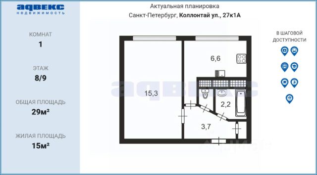 Прямая продажа! В продажу предлагаем 1 комнатную квартиру в кирпично-монолитном доме, 2005 года постройки. Закрытая территория, охрана, въезд машин через шлагбаум, . Дом обслуживает ТСЖ, во дворе детская, спортивная, футбольная площадка, зоны отдыха, видеонаблюдение. Парадная в хорошем состоянии, двери ПВХ, 2 лифта (пассажирский и грузовой), видеонаблюдение. Квартира расположена на 7 этаже, площадь 29 кв.м с лоджией (небольшая 2,24 кв.м). Площадь квартиры 29 кв.м, комната правильной квадратной формы - 14,67 кв.м с выходом на лоджию, кухня - 6,31 кв.м. Сан.узел совмещенный - 3,96 кв.м. Квартира требует ремонта. Хорошая транспортная доступность. Две станции метро в 15-20 минутах пешком, 7-10 мин на транспорте ( ст. метро "улица Дыбенко", "Большевиков"). Остановки наземного транспорта рядом с домом. Развитая инфраструктура: рядом магазин, школа, детский сад. Прямая продажа. Один взрослый собственник. Без обременений. Никто не прописан. . Продается 1-комнатная квартира в округе Оккервиль в Санкт-Петербурге.