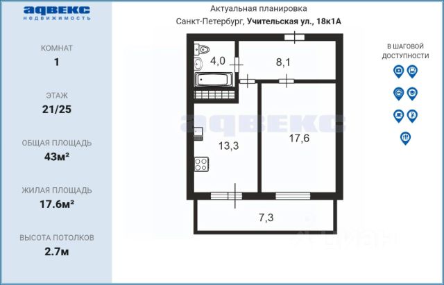 Продается уютная однокомнатная квартира в Санкт-Петербурге, на Светлановском проспекте, 60к1. Общая площадь составляет 31 кв. м, жилая площадь — 15 кв. м, а площадь кухни — 8 кв. м. Квартира расположена на 6-м этаже 9-этажного блочного дома, построенного в 1972 году. Высота потолков — 2,5 метра. Из окон открывается вид на улицу. В доме есть пассажирский лифт, мусоропровод и пандус, что делает проживание комфортным и удобным. Квартира находится в хорошем состоянии, в ней выполнен косметический ремонт. В комнате достаточно места для комфортного проживания, а кухня порадует любителей готовить. В квартире есть один остекленный балкон, где можно наслаждаться свежим воздухом. Санузел раздельный и отделан аккуратно, что добавляет удобства в повседневной жизни. Дом находится в районе с развитой инфраструктурой. В пешей доступности расположены школы, детские сады и магазины, что делает это место идеальным для семей с детьми. До станции метро Гражданский проспект можно дойти пешком за 18 минут. Близость к основным транспортным артериям города обеспечивает легкий доступ к другим районам Санкт-Петербурга. Квартира продается по договору купли-продажи. Возможна ипотека, что облегчает процесс покупки. Все документы готовы к сделке, обременений нет. Это отличная возможность для тех, кто ищет жилье в спокойном районе с удобным доступом к городской инфраструктуре. Приглашаем на просмотр! Свяжитесь с нами, чтобы договориться о времени встречи и задать все интересующие вас вопросы. Это может быть ваш идеальный новый дом! Продается 1-комнатная квартира в округе Прометей в Санкт-Петербурге.