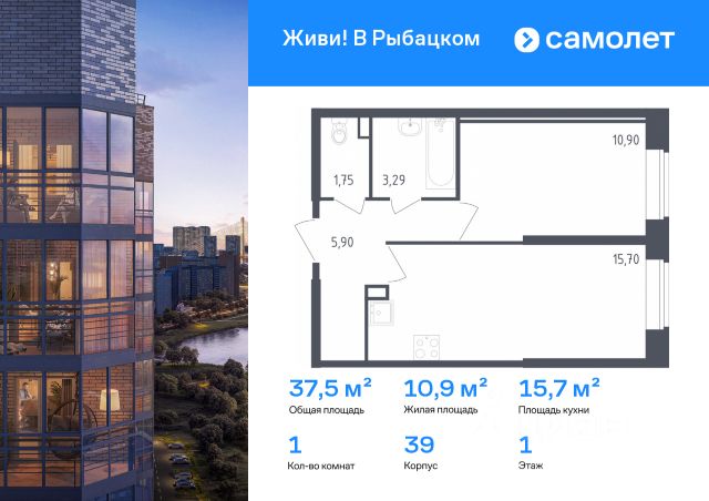 Строим кварталы для жизни с заботой о будущем. Предлагается 1-комнатная квартира комфорт-класса 34,93 кв.м в корпусе 39 на 1 этаже, в ЖК "Живи! В Рыбацком" Квартира с предчистовой отделкой. Доступность дополнительных опций уточняйте у застройщика. Приобрести квартиру возможно по специальным акциям от застройщика, с текущими условиями акций можно ознакомиться в блоке "Акций". Цена динамическая и может отличаться, уточняйте актуальность у застройщика. Квартал "Живи! В Рыбацком" в Невском районе Санкт-Петербурга расположен рядом с рекой Славянкой и парком. Всего 20 минут пешей прогулки — и вы у метро "Рыбацкое". Автомобилисты будут добираться до КАДа за десять минут. В квартале работают два детских сада, школа и кабинет врача. На первых этажах зданий открыты магазины, кафе и салоны красоты. Во дворе — зеленые бульвары, воркаут-площадка, спортивный и игровой кластеры. Для машин — подземный паркинг. Кирпично-монолитные дома с каменной облицовкой — воплощение долговечности и тепла. Есть в квартале и камерный 30-й корпус, в нем восемь этажей, 70 квартир и приватный двор-парк. В сквозных парадных — безбарьерная среда, помещения для хранения колясок и велосипедов и система видеонаблюдения. 1-комнатная квартира в округе Рыбацкое в Санкт-Петербурге.