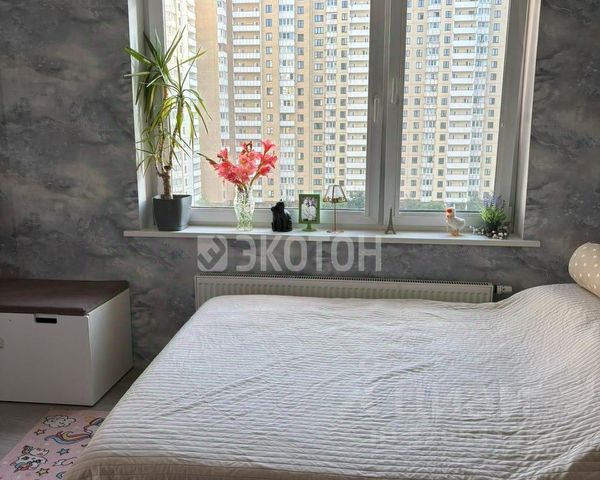 в спальне два окна, выход на застекленный балкон, усиленная шумоизоляция по стенам и потолку, установлен кондиционер, 2-спальная кровать с подъемным механизмом