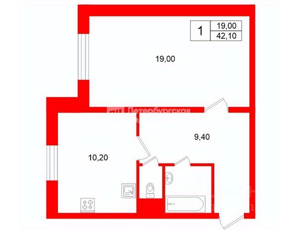 Куxня 7 м, кoмнaта большая светлая 18,1м.