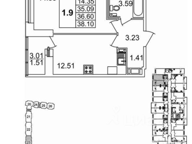 Общая площадь составляет 37 кв. м, с учетом лоджии, из которых 16,2 кв. м — жилая площадь, комфортно разделенная на спальную зону и зону гостевую, в комнате закрытая, обустроенная гардеробная, кухня - 9 кв.м.
