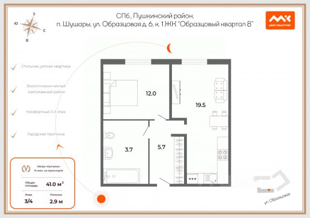 Уникальная просторная квартира на мансардном этаже с потолками 4,2 м! Свободная планировка и дизайн-проект в подарок! Прописка Санкт-Петербург, удобная транспортная доступность. ХАРАКТЕРИСТИКА ДОМА, КВАРТИРЫ: ПОЧЕМУ ЭТА КВАРТИРА — ВАШ ИДЕАЛЬНЫЙ ВАРИАНТ? Светлая и уютная — 39,5 м² + балкон 6,2 м². Современный ЖК Образцовый квартал - это малоэтажное строительство с собственной атмосферой: дворы без машин, ухоженные аллеи, спокойная семейная среда. Образцовый квартал — это малоэтажная сказка в городе. Монолитный дом комфорт-класса 2021 г. постройки. Квартира расположена на последнем (мансардном) 4 этаже, что обеспечивает полную изоляцию от соседей сверху и неповторимую атмосферу загородного дома в черте города. Высота потолков "в коньке" — 4,2 метра! Благодаря этому пространство идеально подходит под организацию второго уровня (спальная зона, кабинет или гардеробная). Квартира свободной планировки, без отделки. Это идеальный вариант для реализации самых смелых дизайнерских идей. Вы получите "чистый лист", где сможете создать пространство своей мечты. Здесь нет стен — есть только ваша фантазия! Балкон с панорамным остеклением, увеличенной площади 6,2 кв.м., широкий балкон легко трансформируется в дополнительный кабинет, зону отдыха с шезлонгами или зимний сад. Окна выходят во двор — тихую, уютную зеленую зону ЖК. В квартире имеется мебель, ее наличие можно обсудить индивидуально (возможна передача по договоренности). Квартира прогревается равномерно, окна выходят так, что света достаточно даже пасмурным днём, установлен мощный кондиционер. Зона кухни-гостиной 17,8 м² с выходом на панорамный балкон 6,2 кв.м. Зона комнаты 11,2 м² , совмещенный с/у. Высокие потолки 4,2 м в коньке (наименьшая точка высоты 2,87 м) - подарят вам ощущение простора и пространства. Приятные соседи — дом заселенный, дружная атмосфера, что важно для семейной жизни. ИНФРАСТРУКТУРА, КОТОРАЯ РЯДОМ: До метро "Московская" и "Купчино" — 20 минут на транспорте. Удобный выезд на КАД 5-7 мин. Запланировано строительство железнодорожной станции. ЖК Образцовый квартал расположен в Пушкинском районе Санкт-Петербурга, всего в нескольких минутах езды от Царского Села. В шаговой доступности: сетевые супермаркеты, кафе, детский сад, школы. В непосредственной близости достопримечательности Пушкина с его парками и дворцовыми ансамблями: Екатерининский парк, Баболовский парк, Отдельный(Нижний), Павловский. Большая наземная парковка у дома — никаких проблем с автомобилем. ЮРИДИЧЕСКАЯ ЧИСТОТА: Прямая продажа (первая). Полная стоимость в договоре. Один взрослый собственник. Материнский капитал не использован. Подходит под ипотеку. Быстрый выход на сделку. Звоните! Согласуем просмотр в удобное время! Продается 1-комнатная квартира в территории Пулковское в поселке Шушары.