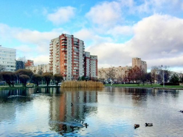 Дом расположен в сложившемся жилом районе Калининского района, рядом с зелёной зоной. В непосредственной близости — Муринский парк, крупный городской парк с прогулочными маршрутами, велодорожками и спортивной инфраструктурой. Это сильный аргумент для покупателей, которым важны прогулки, спорт и ощущение пространства рядом с домом.