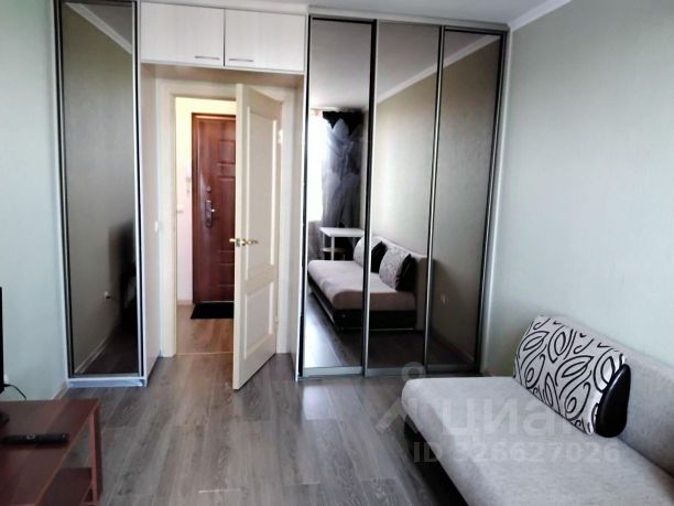 В коридоре вместительная гардеробная, подходит как для хранения одежды, так и для бытовых принадлежностей. Гардеробная имеет важное функциональное значение для однокомнатной квартиры.