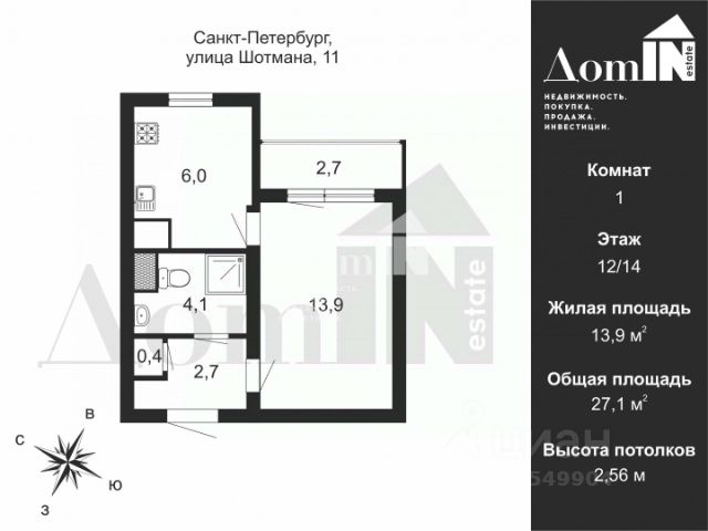 - Квартира расположена на 11 этаже 14-этажного кирпичного дома 1975 года постройки (это не доля, а именно полноценная 1-комнатная квартира по документам. Дом — не общежитие!).