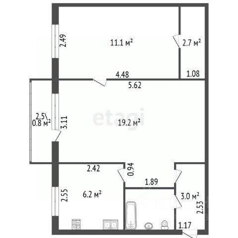 - Санузел раздельный (никаких компромиссов между душем и троном). Потолки 2,7 м — головой не заденешь, даже если вы баскетболист.