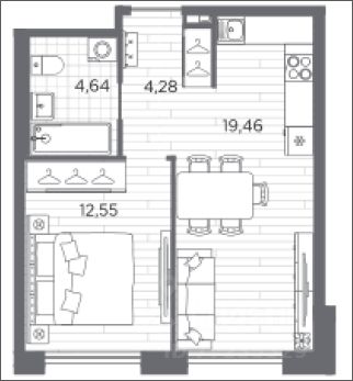 Мебель: вся выполнена на заказ по индивидуальному проекту дизайнера из Еггер. В прихожей все продумано до мелочей, есть куда положить ключи, сумку, перчатки, средства для обуви. В спальне большой шкаф с хозяйственным отделение для швабры и пылесоса, рабочая зона или туалетный столик. Кухня выполнена в трендовом дизайне, прямая - всегда самый удобный вариант в использовании, в которую поместилось все необходимое. Мягкая мебель так же заказывалась индивидуально - раскладной диван и кровать с подъемным механизмом. А так же раскладной стол из шпона дуба и дизайнерские стулья.