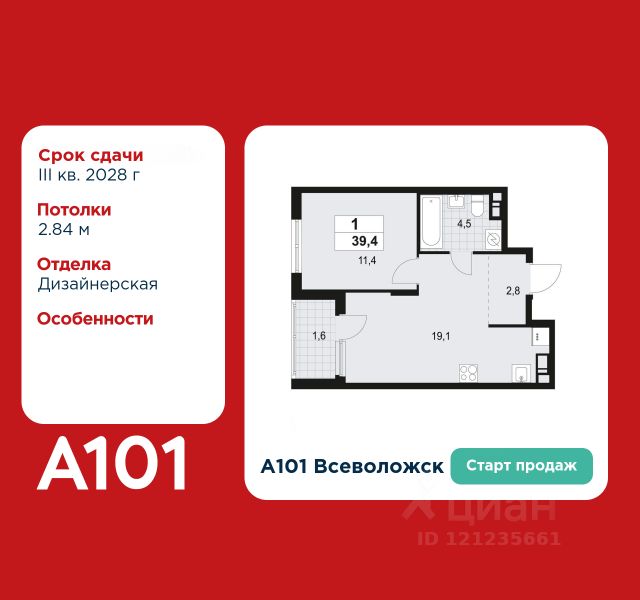 1-комнатная квартира площадью 33.20 в ЖК "А101 Всеволожск" c лоджией на 8 этаже. Квартира white box. Вид из окна во двор. В квартире 1 санузел. Высота потолков 2.8 м. Особенность планировки - гардеробная. Предложения от застройщика на декабрь 2025: - Гибкая рассрочка 20 000 руб/мес. и первым взносом 10%. ОТДЕЛКА Квартира с предчистовой отделкой предполагает: качественную стяжку на полах под финишное покрытие, потолок с обеспыливающей грунтовкой белого цвета, ровные стены с покрытием штукатурка. Выполнены все работы по проведению электрики. На все отделочные работы от застройщика предоставляется гарантия. Если вы хотите дозаказать дизайнерскую отделку, обращайтесь к нашими специалистами. ОСОБЕННОСТИ ПЛАНИРОВКИ Гардеробная позволяет не только удобно разместить все вещи, но и идеально подходит для хранения крупных предметов. ПАРАДНАЯ В каждой парадной предусмотрены места для хранения велосипедов и колясок, гостевой санузел, лапамойка (место для мытья домашних животных или колес велосипедов) и удобная зона ожидания для гостей. ДВОРЫ И ОКРУЖЕНИЕ Просторные дворы свободны от машин и закрыты от посторонних. Большую часть комплекса займут благоустроенные зелёные зоны, теневые сады и городские общественные пространства с развитой тротуарной сетью и велодорожками. Каждый дом оборудован системами видеонаблюдения и контроля доступа. Не хватает средств на покупку кладового помещения? Оформите ипотеку на квартиру и добавьте к ней часть стоимости кладовой. ЗАСТРОЙЩИК ГК "А101" - крупный инвестиционно-строительный холдинг, занимает 6-е место по объему строительства в России (по данным "Единого ресурса застройщиков" на 2023 год). НКР присвоило ГК "А101" кредитный рейтинг A+.ru, подтверждая его надежность и финансовую устойчивость для завершения строительства ЖК.