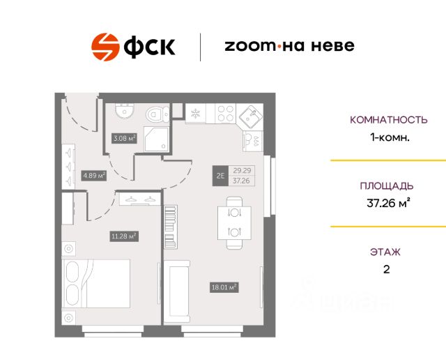 Цена со скидкой до 30% в прямой продаже от застройщика — только в этом месяце. На апартаменты действует беспроцентная рассрочка. Роскошные виды на Неву. 1-к апартамент в комплексе класса бизнес-лайт Зум на Неве на 6-м этаже. Общая площадь 35,5. Без отделки. Зум на Неве расположен в новом месте силы рядом с центром города на первой линии Октябрьской набережной в Невском районе, всего в 7 км от исторической части Санкт-Петербурга. Большой выбор эргономичных и максимально продуманных планировок позволит каждому найти вариант по душе. Панорамные виды на Неву, благоустроенные дворы, детская игровая комната, подземный паркинг, коммерческие зоны на первом этаже, это и многое другое делает Зум на Неве идеальным местом для жизни. Особенности: - Панорамные виды на Неву и город; - 10 мин. до Парка Строителей, 15 мин. до Лондон-молла, Ленты, Максидома, 15 мин. до метро "ул. Дыбенко", 12 мин. до КАД, 10 мин. до центра; - Единая архитектурная концепция. Сдержанные и монументальные фасады в неоклассическом стиле; - Парадный лобби для жильцов. Единый вход в комплекс с администратором, зоной ресепшн и охраной, зоной для бесконтактной доставки посылок и еды; - Подземный отапливаемый паркинг с доступом из парадной; - Доступно 3 варианта отделки на выбор: черновая, предчистовая (White Box) и чистовая; - Зоны отдыха для взрослых и детей, Wi-Fi-покрытие во дворе и в паркинге, зоны для питомцев, арт-объекты и много другое. В шаговой доступности вся необходимая инфраструктура от детских садов и школ до супермаркетов и салонов красоты; - Все происходящее контролируется видеокамерами, а покой внутренней территории и безопасность ваших детей гарантируется полным отсутствием транспорта во дворах в концепции "без машин".