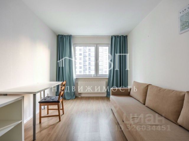 Мебель фирмы Икея, в комнате кровать и диван, этажерка, платяной шкаф, письменный стол, на кухне кухонный гарнитур, двухкамерный холодильник, микроволновка, электрическая плита с духовым шкафом, вытяжка, стол и стулья, остаётся икеевская посуда. В ванной: сантехника, ванна, стиральная машина, раковина с тумбой, зеркало навесное, полотенцесушитель.