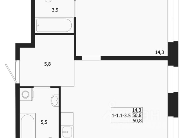 + эрогономичная планировка, просторная кухня 18 м кв, спальня 13,5 кв м, большой санузел 5 м кв, удобные места для организации хранения;