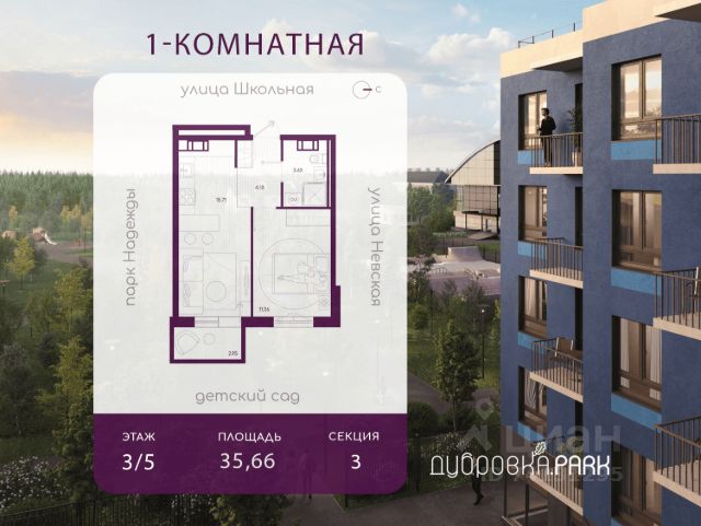 Продается 1-комн. квартира 71, площадью 32.26 м2 в монолитно-кирпичной новостройке в 20 мин. транспортом от м.Улица Дыбенко. Возможен вариант покупки с использованием ипотечных средств, есть рассрочка, возможна покупка с использованием материнского капитала, есть военная ипотека. Жилая площадь 11.24 м2, кухня 10.87 м2, квартира без отделки, балконов - 1, окна выходят во двор. Квартира располагается на 3 этаже 5-этажного дома в ЖК Дубровка.Park. Застройщик - ЛенОблСтрой 47, сдача дома - III квартал 2026 года, высота потолков 2.72 м. Дом оборудован грузовым и пассажирским лифтом. Парковка автомобилей - наземная. Инфраструктура: школа, детский сад, поликлиника, детские площадки, спортивные площадки, места для отдыха, супермаркет, рестораны, фитнес-центр. Жилой комплекс "Дубровка.Park" это современный монолитно-кирпичный комплекс от застройщика ГК "ЛенОблСтрой 47", расположенный в живописном поселке Дубровка Ленинградской области по адресу: Школьная улица, 2. Комплекс сочетает в себе комфорт городской жизни и прелести загородной природы. Квартиры с разнообразными планировками предлагаются как с чистовой, так и с предчистовой отделкой. Высота потолков 2.72 м. Окна выходят во двор и на улицу, обеспечивая оптимальное освещение и вид. Ввод в эксплуатацию запланирован на 3 квартал 2026 года (ожидается досрочная сдача объекта). Каждая секция оснащена лифтами, предусмотрена наземная парковка. Создана безбарьерная среда с пандусами. Архитектура комплекса выполнена в современном стиле с использованием экологичных материалов, гармонично вписанных в окружающий ландшафт. На территории расположены детские и спортивные площадки, зоны отдыха с озеленением, газонами, деревьями и кустарниками, собственный выход в парк. В пешей доступности находятся детские сады, школы, поликлиники, магазины, рестораны и фитнес-центры. Прекрасная экология и близость парка делают "Дубровка.Park" идеальным местом для тех, кто ценит здоровую и активную жизнь. Удобная транспортная доступность позволяет быстро добраться до города. Позвоните и узнайте условия покупки прямо сейчас!