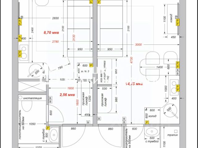 - удобная прихожая площадью 3,37м2 с гардеробной комнатой площадью 1,41 м2