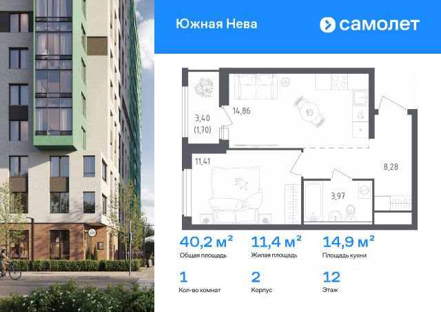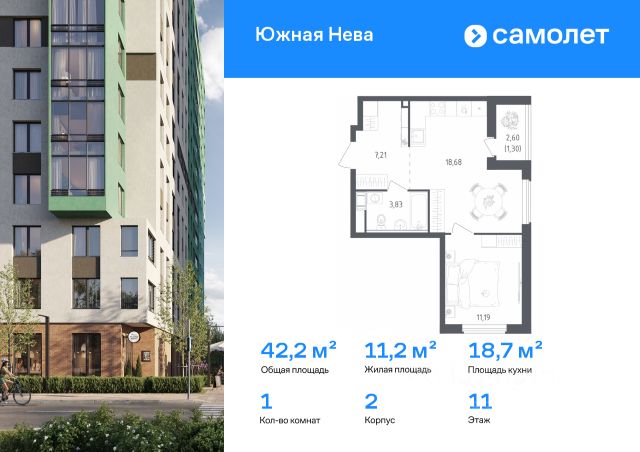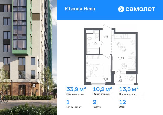 Строим кварталы для жизни с заботой о будущем. Предлагается 1-комнатная квартира комфорт-класса 39,35 кв.м в корпусе 1 на 5 этаже, в ЖК "Южная Нева" Квартира с предчистовой отделкой. Доступность дополнительных опций уточняйте у застройщика. Приобрести квартиру возможно по специальным акциям от застройщика, с текущими условиями акций можно ознакомиться в блоке "Акций". Цена динамическая и может отличаться, уточняйте актуальность у застройщика. Спокойное течение Невы, монументальные арки Володарского моста и простор лесопарка создают атмосферу жилого комплекса "Южная Нева". До КАДа — всего 5 минут, до центра города — 30 минут на машине, а станция метро "Пролетарская" в 10 минутах. Для любителей природы рядом Невский лесопарк и "МЕГА Парк", где можно бегать, кататься на велосипеде или посетить веревочный парк. Для детей предусмотрены школа и 2 детских сада, а на первых этажах домов откроются салоны красоты, магазины и кафе. В шаговой доступности — фитнес-центр и торговые центры "МЕГА Дыбенко" и "Лондон Молл". Комплекс состоит из 11 монолитных домов высотой от 12 до 23 этажей с разноцветными фасадами и панорамными балконами. Двор украшают 7 мостов-навесов, а центральная аллея — собственная Нева. Здесь можно позагорать на лежаках или поиграть в шахматы, позаниматься на спортивной площадке или отвести ребенка в игровую зону на встречу с друзьями. В "Южной Неве" есть планировки с проходными кухнями-гостиными и гардеробными.