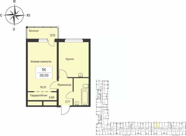 Продаётся 1-комнатная квартира в сданном доме (Корпус 3), срок сдачи: IV-кв. 2024, общей площадью 38.5 кв.м., на 10 этаже. Описание проекта: Жилой комплекс комфорт класса средней этажности с закрытыми, благоустроенными дворами расположен в развитом и зеленом районе Ленинградской области- Янино-1. На территории жилого квартала запланировано все для комфортной жизни: появится школа и детские сады, современные детские и спортивные площадки, пешеходный бульвар и другие места для отдыха. На первых этажах разместятся магазины, кафе и другие сервисы. Для владельцев автомобилей на территории квартала будут построены многоуровневые парковки. Местоположение Жилой квартал "Расцветай в Янино" расположен в районе Янино-1, Ленинградкой области. Проект расположен вплотную к восточной границе Санкт-Петербурга - в 4 минутах от КАД. Проект окружают лесные массивы. В шаговой доступности находится Ржевский лесопарк, также рядом расположен памятник природы Колтушские высоты - парк с обустроенными экотропами и живописным веломаршрутом. Транспортная доступность: До метро "Проспект Большевиков" или метро "Ладожская" можно доехать на общественном транспорте за 12 минут. До исторического центра города можно доехать за 25 минут на автомобиле. Квартиры В жилом квартале представлены разнообразные планировочные решения: классические и евро-форматы от 25 до 77 м2. В квартирах запроектированы кухни-гостиные, мастер-спальни, гардеробные. Все квартиры сдаются под предчистовую отделку. Придомовая территория Благоустроенная территория жилого квартала включает в себя обустроенные места для отдыха, спорта и игр для детей. Авторский ландшафтный дизайн предполагает высадку деревьев и кустарников различных пород. Внутренние дворы будут закрыты от машин, все открытые машиноместа вынесены за периметр комплекса. Лобби Отделка мест общего пользования выполнена по индивидуальныму проекту московского архитектурного бюро с использованием материалов улучшенного качества.
