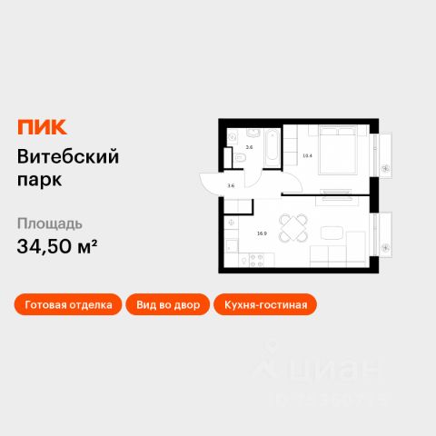 Продаётся 1-комн. квартира площадью 33,9 кв.м на 10 этаже 12 этажного дома (Корпус 6, Секция 1) проекта ПИК Витебский парк. Светлый просторный подъезд на уровне земли, функциональная планировка, большие окна, предчистовая отделка. Жилой квартал "Витебский парк" находится во Фрунзенском районе Санкт-Петербурга, в 15 минутах пешком от метро "Обводный канал". А в 2027 году всего в паре минут от проекта планируют открыть станцию метро "Боровая". В квартал входят 3 детских сада, школа и 7 жилых домов с дворами-парками, куда не могут зайти посторонние люди и заехать автомобили. Школа на 1250 мест и детский сад на 350 мест откроются одновременно с заселением первой очереди, это значит, что жители проекта смогут отдать своих детей в новые образовательные учреждения на территории квартала. Во дворах приятно отдыхать, знакомиться с соседями и даже заниматься йогой, а для детей мы построим детские площадки. Рядом появятся современные спортивные площадки. На первых этажах домов откроются магазины, кафе и другие сервисы. Через весь жилой район протянется широкий пешеходный бульвар для прогулок и спорта. Рядом с "Витебским парком" есть всё для комфортной жизни: магазины, торговые центры, фитнес-клубы, кафе и рестораны, а ещё детские сады, школы, вузы и поликлиника. Артикул 1005183 (Застройщик ООО "СЗ "Лиговский Сити") [cn_sbp_1796968]