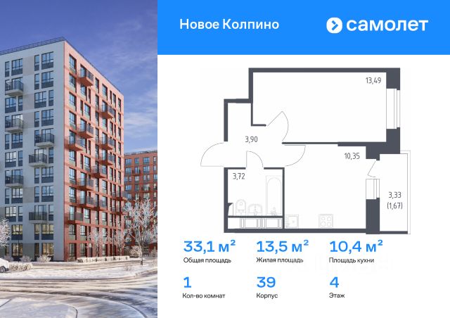 Купить 1-комнатную квартиру рядом со школой на улице Севастьянова в городе Колпино в Санкт-Петербурге