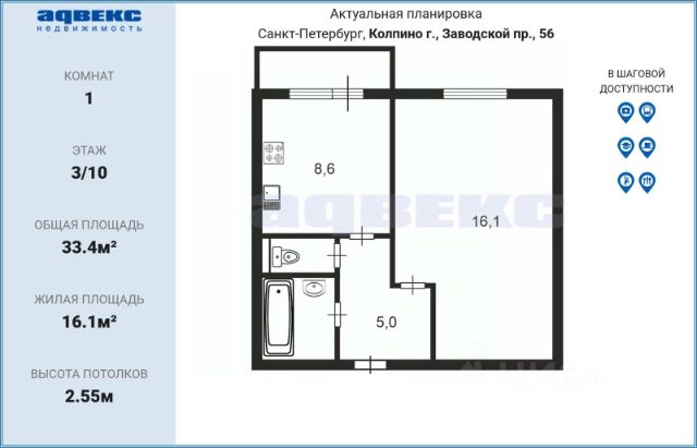 Купить 1-комнатную квартиру рядом со школой рядом с метро Дунайская