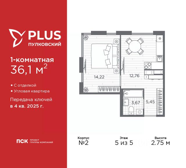 Продается 1-комнатная квартира в ЖК "Пулково Лейк" на 4 этаже. Общая площадь составляет 51.80 кв. м. Квартира с чистовой отделкой. Жилой комплекс "Пулково Лейк" располагается по адресу Санкт-Петербург, Московский. Пулково Лейк - проект малоэтажной застройки на берегу озера на границе Московского и Пушкинского районов. Дома высотой всего 4 этажа, квартиры от уютных студий до трехкомнатных квартир для большой семьи. Широчайший выбор планировок, включая квартиры с мастер-спальнями, патио, каминами, саунами, двухуровневые квартиры. Школа, детские сады, парк на берегу озера и выезды на Пулковское и Петербургское шоссе. Расположение: • 5 мин на авто до Аэропорта Пулково; • 10 мин на авто до станций метро "Московская; • 10-15 мин на авто до городов Пушкина, Павловска и Гатчины; • 20 мин на авто до центра Санкт-Петербурга. Квартиры в проекте сдаются с предчистовой и чистовой отделкой Соmfоrt Stоnе и Соmfоrt Wооd по современным стандартам - Вы можете сами выбрать отделку, подходящую именно Вам. Дома оборудованы самыми современными инженерными системами и "Умным домом". В рамках проекта будет построена современная школа на 925 мест и 2 детских сада на 160 и 240 мест, выезды на Пулковское и Петербургское шоссе, а также храм рядом со сквером "Пулковский рубеж". Общественное пространство вдоль берега озера превратится во всесезонный парк, в котором найдется место для любых активностей от пробежек, катания на САПах и велосипедах до отдыха в шезлонгах и любования закатом солнца. Зимой будет работать каток, проложен лыжный маршрут, предусмотрено место для новогодней елки и горок для детей. Для Ваших питомцев - площадка для выгула собак. Преимущества: • Высота потолков от 2,6 до 4,5 м; • Уникальные планировки; • Парк на берегу озера; • Система "Умный дом"; • Дворы без машин; • Колясочная в парадной; • Видеонаблюдение в холлах, на первом этаже, в лифтах и в паркингах. Успейте приобрести квартиру на выгодных условиях! Чтобы узнать подробности, обращайтесь за консультацией по телефону.