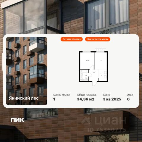 Продаётся 1-комн. квартира площадью 40,37 кв.м на 3 этаже 15 этажного дома (Корпус 7, Секция 1) проекта ПИК Янинский лес. Светлый просторный подъезд на уровне земли, функциональная планировка, большие окна, c отделкой. Жилой квартал "Янинский лес" возводится в районе Янино-1 Ленинградской области. Автобусная остановка находится в 3 минутах пешком. Проект расположен вплотную к восточной границе Санкт-Петербурга - в 4 минутах от КАД. До метро "Ладожская" - 23 минуты на общественном транспорте. До исторического центра города можно доехать за 25 минут на автомобиле. "Янинский лес" - масштабный проект из 32 жилых корпусов, где будет всё для комфортной жизни. Здесь предусмотрены надземные паркинги, откроются детские сады, школа и поликлиника. Кроме этого, появятся места, в которых можно проводить свободное время: ледовая арена и торговый центр площадью больше 3000 м². Жилой район строится по всем правилам ПИК-Стандарта: в зелёных дворах-парках появятся современные детские и спортивные площадки, пешеходный бульвар и другие места для отдыха. На первых этажах разместятся магазины, кафе и другие сервисы. Во дворах не будет автомобилей, а для гостей предусмотрены парковочные места. Проект окружают лесные массивы. В пешей доступности находится Ржевский лесопарк: летом там можно гулять и собирать грибы, а зимой кататься на лыжах. Также рядом расположен памятник природы Колтушские высоты - парк с обустроенными экотропами и веломаршрутом. А главное место притяжения местных жителей - озеро с обустроенным местом для пикников. Артикул 914959 (Застройщик ООО "СПЕЦИАЛИЗИРОВАННЫЙ ЗАСТРОЙЩИК"ЭКСТРАГРАД") [cn_sbp_1776469]