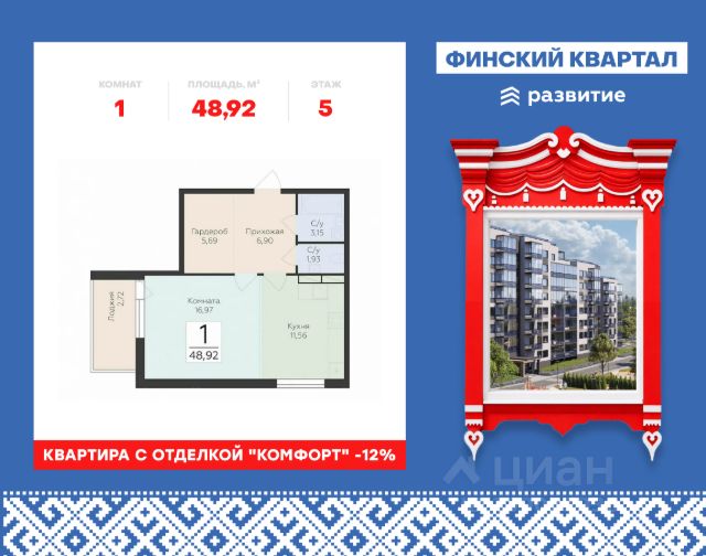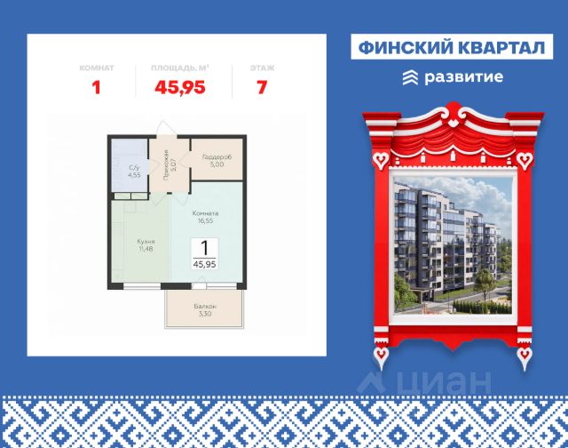 "Продается квартира площадью 43.66 кв. м без отделки. Квартира расположена на 1 этаже 7 этажного дома, в жилом комплексе комфорт-класса "Финский Квартал". "Финский квартал" - это уникальный проект комфорт-класса для тех, кто хотел бы жить на природе, но при этом находиться вблизи Северной столицы. Расположенный в окружении одного из самых крупных парков Ленобласти - Лахтинского, проект предлагает своим жителям доступную инфраструктуру, комплексное благоустройство территории, 6 секций переменной этажности с современной архитектурой, которая гармонично дополнит район и будет радовать проживающих еще много лет. Найдите свою идеальную квартиру в ЖК "Финский Квартал"! Расположение Пешком: - 5 мин. до детского сада и супермаркета; - 8 мин. до остановки "Зеленая улица"; - 10 мин. до лесопарковой зоны. На автомобиле: - 3 мин. до Приозерского шоссе; - 10 мин. до Выборгского шоссе; - 12 мин. до КАД; - 30 мин. до ст. метро "Проспект Просвещения". Благоустройство - большой яркий двор с ландшафтным дизайном; - живая изгородь, кустарники и хвойники; - умное зонирование тихих и активных площадок; - сквер для прогулок и отдыха; - изумрудные лужайки для пикников; - дорожки для пешеходов и велосипедистов; - большие игровые площадки; - мягкое покрытие для безопасности детей; - тренажеры, турники и веревочные комплексы; - пространство только для пешеходов - без машин; - наземная парковка за пределами двора; - специальные площадки для выгула питомцев; - светлые дизайнерские холлы; - светопрозрачное остекление и большие окна; - декоративная подсветка парадных; - колясочные помещения для комфорта родителей; - места для хранения велосипедов и самокатов. Окружение - свежий воздух: парк усадьбы "Осиновая Роща", Лахтинский парк, лесопарк "Курортный", Левашовский заказник, Ново-Кавголовский лесопарк; - водные объекты: Сестрорецкий Разлив, пляжи у Тохколодского и Большого озер, залив Сярюнлахти; - инфраструктура: 2 детских сада, школа, кафе, продуктовый супермаркет, больница; - для крупных покупок: ТРЦ "Китай-Город", "Мега-Парнас"", "Гранд Каньон"; - активный отдых: горнолыжные комплексы "Охта-Парк" и "Токсово", конный клуб "Осиновая Роща", ФОК "Норус"."