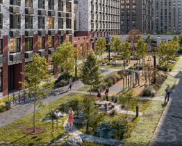 Приватный внутренний двор, находящийся под охраной 24 часа в сутки. Охраняемыи приватныи двор с площадками для игр и отдыха, а также входы в парадные жилых корпусов располагаются на стилобате на уровне второго этажа, поэтому забора вокруг корпусов на уровне первого этажа нет. На территории множество деревьев, кустарников и трав. В тихих зеленых уголках можно отдохнуть и поработать, скрывшись ото всех. А можно с ветерком проехать по велодорожке во дворе, не боясь автомобилеи (их во дворе нет).