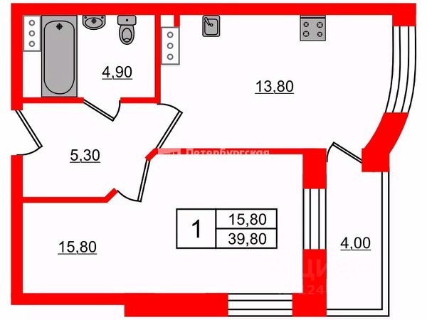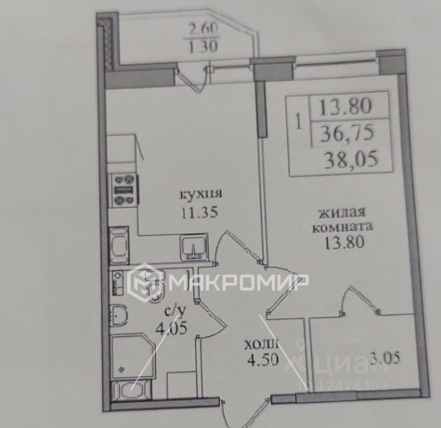Площадь: 37.7 кв.м. — оптимальный метраж для комфортной жизни.