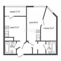 Идеальная планировка: Правильная форма комнат, раздельный санузел. Окна выходят на 2 стороны: спальня выходит в тихий двор, а гостиная на проспект Авиаконструкторов.