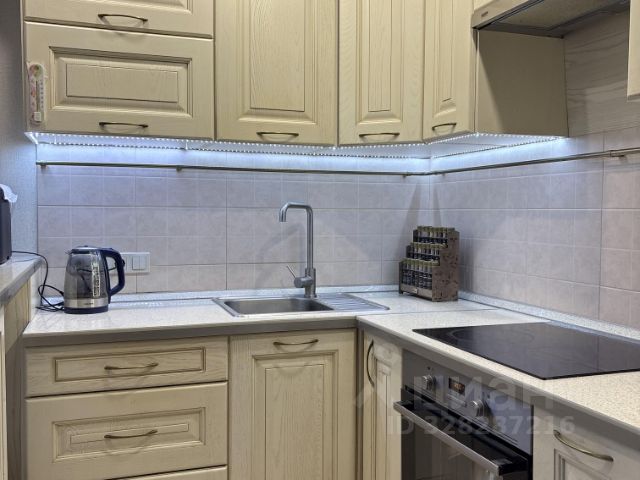 Квартира в отличном состоянии, произведена замена всех инженерных и санитарно-технических коммуникаций, установлены стеклопакеты, натяжные потолки, ламинат. Комплект встроенной кухонной мебели с импортной бытовой техникой также остается будущему владельцу.