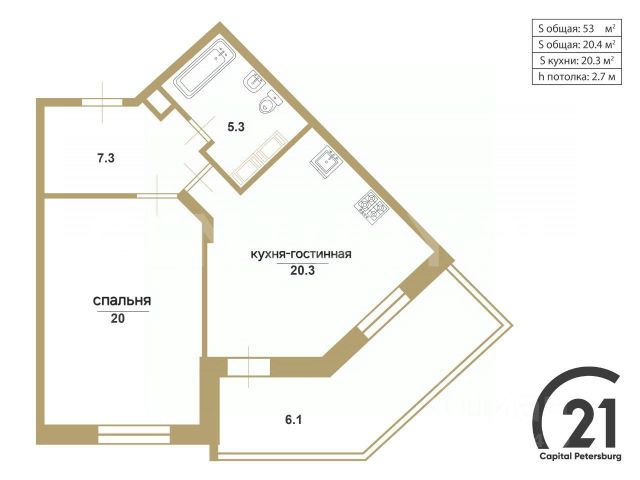 полноценная, широкая, правильной формы, несмотря на не огромный метраж - позволяет грамотно расставить вещи, всегда много пространства и света