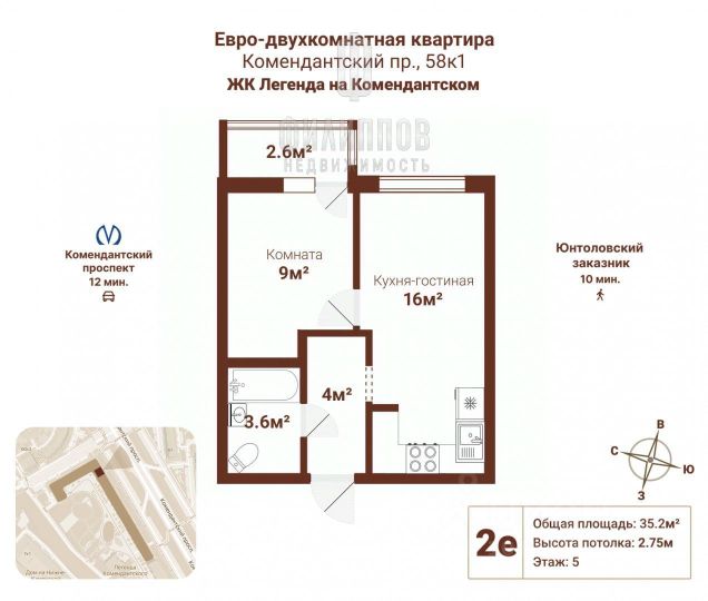В продаже просторная однокомнатная квартира у метро Комендантский проспект. Вам идеально подойдет эта квартира, если Вы: - Вам важна близость к метро и хорошая транспортная доступность для автомобилистов. Здесь: 15 минут пешком от метро или 5 минут транспортом (остановка в 3 минутах ходьбы), рядом выезд (и съезд) на ЗСД; - Ищете квартиру с действительно комфортной планировкой. У нас: вместительная прихожая с гардеробной, большая комната 18 кв.м., просторная кухня практически квадратной формы, раздельный санузел, остекленная лоджия. - Вам нужен вариант заезжай и живи, без лишних вложений времени и денег в ремонт. - Нуждаетесь в тишине и спокойствии в Вашей квартире (дом расположен в тихом зеленом дворе). - Хотите жить в благоустроенном зеленом районе с супер-развитой инфраструктурой; А также из плюсов: - Ухоженный дом ЖСК 1989 года постройки, очень чистые парадные, 4 квартиры на этаже; - В квартире тихо и тепло, окна выходят в зеленый двор; - Один взрослый собственник с момента постройки дома, юридически чистая история квартиры; В квартире остается часть мебели и техники, финально обсуждается с покупателем. Звоните, отвечу на все вопросы и организую показ. 1-комнатная квартира (вторичка) на проспекте Комендантский в Санкт-Петербурге.