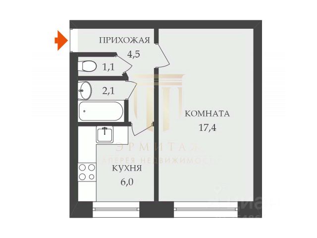 В продаже уютная 1-комнатная квартира общей площадью 30,7 м2.