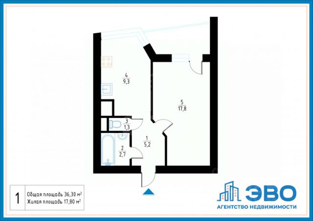 имеется вместительная гардеробная (2.3 м.кв);