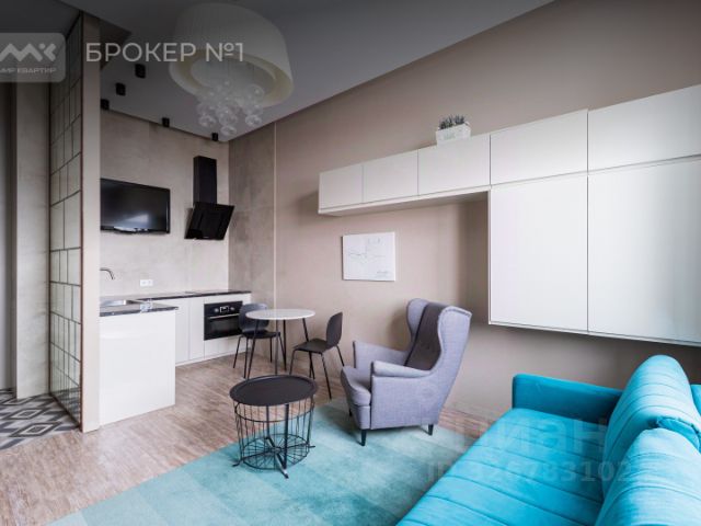 • Мебель и техника: квартира полностью укомплектована: встроенная бытовая техника, кровать, диван-кровать, а также достаточно мест для хранения.