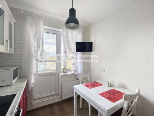 О квартире: Удобная планировка: просторная прихожая, гардеробная, застекленная лоджия. Окна выходят на Туристскую улицу, западная сторона — широкая панорама и красивый закат. Потолки 2,7 м, на полу качественный ламинат. Совмещенный санузел. Кухня изготовлена на заказ, оснащена всей необходимой бытовой техникой фирмы Bosch, Kuppersberg, Samsung: холодильник, варочная панель, духовой шкаф, вытяжка, микроволновая печь. В комнате: диван с ортопедическим матрасом от немецкой фирмы (выполнен на заказ), стеллаж, телевизор. Все оснащение и техника в идеальном состоянии остаются новому владельцу