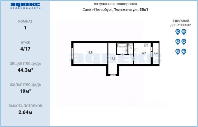 Добрый день! Продаем УЮТНУЮ СВЕТЛУЮ ОДНОКОМНАТНУЮ квартиру с КОМФОРТНОЙ планировкой, в ТИХОМ районе с ЧИСТОЙ юридической историей! Отличный вариант для жизни и сдачи в аренду! Площадь квартиры указана БЕЗ УЧЕТА балкона (2.6 м2). !Продажа БЕЗ КОМИССИИ! Деятельность нашего агентства по всем сделкам застрахована на 20.000.000 р., будем рады покупкам у нас и с нами. Кстати, если Вы сейчас продаете свою НЕДВИЖИМОСТЬ, то мы можем СРАЗУ ЕЁ КУПИТЬ! Описание и фотографии соответствуют действительности. ПРО ДОКУМЕНТЫ: -Квартирой владеет один СОВЕРШЕННОЛЕТНИЙ собственник, который БУДЕТ присутствовать на подписании договора купли-продажи и НА ВСЕХ этапах сделки -ПЕРВАЯ ПРОДАЖА с момента покупки от застройщика -БЕЗ ОБРЕМЕНЕНИЙ -Укажем ПОЛНУЮ СТОИМОСТЬ в договоре. -БЕЗ ДОЛГОВ -БЕЗ перепланировок -Мат. Капитал не использовался -Мы в ПРЯМОЙ продаже и готовы к БЫСТРОМУ выходу на сделку -Квартира подходит под ИПОТЕКУ любого банка, если необходимо, поможем с одобрением на самых выгодных условиях ПРО КВАРТИРУ: Квартира с действительно КОМФОРТНОЙ планировкой: -ПРОСТОРНАЯ изолированная комната (17.5 м2) -ФУНКЦИОНАЛЬНАЯ кухня (9.1 м²) -КОМФОРТНАЯ прихожая (3.4 м2) -Совмещенный санузел (3.5 м2). -Из окон квартиры отрывается ЗАМЕЧАТЕЛЬНЫЙ вид во двор. -Квартира очень ТЕПЛАЯ. -СПОКОЙНЫЕ соседи. -КОМФОРТНЫЙ 7 этаж ПРО ДОМ И ИНФРАСТРУКТУРУ: -Дом КИРПИЧНО-МОНОЛИТНЫЙ 2018 года постройки -Развитый район для комфортной жизни! -ЗАКРЫТАЯ ТЕРРИТОРИЯ с круглосуточным видеонаблюдением. -Рядом есть необходимые объекты инфраструктуры: продовольственные магазины, аптек, салоны красоты, фитнес-клуб, кафе, рестораны, торговые центры, пункты выдачи Ozon и Wildberries и другие полезные сервисы для комфортной жизни. -В пешей доступности расположены детские сады и школы. -Во дворе расположены детские и спортивные площадки. -Всегда есть парковочные места. В доме есть паркинг со шлагбаумом. -В районе множество парков для прогулок и отдыха, такие как Парк Академика Сахарова, Полюстровский парк и пр. Рядом с домом остановки общественного транспорта. До станции метро Выборгская 5 минут транспортом! До станции метро Лесная 6 минут транспортом! До станции метро Площадь Ленина 6 минут транспортом! Звоните, приезжайте, с радостью Вам всё покажем и ПРОКОНСУЛЬТИРУЕМ ПО СДЕЛКЕ! Продам 1-комнатную квартиру (вторичка) в жк Маршал в Санкт-Петербурге.