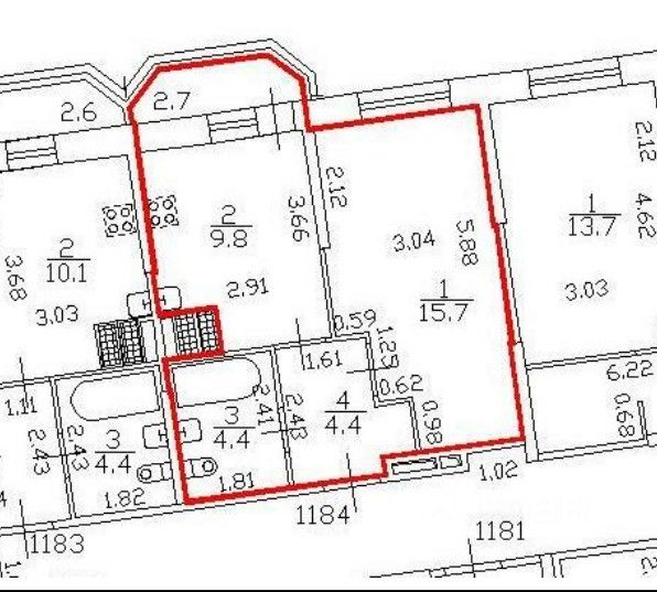 Комната 13,7кв.м., кухня 9,3кв.м, санузел 4,39кв.м., гардеробная 2,3кв.м., балконы 2,37 и 2,41кв.м.