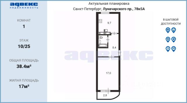 Отличная однокомнатная квартира с предчистовой отделкой в новом многофункциональном доме комфорт-класса. Прямая продажа, документы готовы к сделке. Квартира полностью готова под внешние облицовочные материалы. Цена без занижения. Рядом ст. метро Проспект Просвещения и ст. метро Гражданский проспект. Высокоразвитая инфраструктура. Преимущества квартиры и комплекса: - Квартира расположена на солнечной стороне, поэтому в ней очень светло и комфортно; - Вместительная кухня с выходом на уютную лоджию; - Удобная функциональная планировка; - Единый стиль интерьера парадных и лифтовых зон в пастельных тёплых тонах; - На территории комплекса ведется видеонаблюдение, в домах - консьержи; - Офис управляющей компании расположен непосредственно в ЖК; - Безопасный внутренний двор с детскими и спортивными площадками, тихая зона отдыха. На территории ЖК предусмотрен 3х-этажный ТРК, отдельно стоящий физкультурно-оздоровительный комплекс с двумя бассейнами. Социальная инфраструктура района хорошо развита: 8 детских садов, 6 общеобразовательных школ, медицинские центры и поликлиники, развлекательные и торговые центры, продуктовые магазины и популярные места и зоны отдыха, кафе и рестораны. Транспортная доступность: рядом КАД, метро - красная и синяя ветка, трамваи до метро ходят каждые 5 минут. Быстрая доставка: по близости находятся Самокат, Лавка, Лента, Перекресток, Пятерочка и другие магазины. В пешей доступности находятся парк Сосновка, Шуваловский парк, Муринский парк, Сад Ивана Фомина, Сад Промете. Район является экологически чистым. Звоните! Подробно расскажу о жилом комплексе, доме и квартире. Просмотр квартиры возможен в любой день, даже в выходные и день звонка. Агентам просьба не беспокоить. ID Объекта: V1191