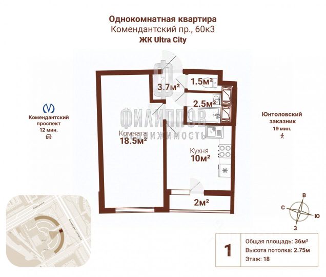 В продаже квартира 2Е формата площадью 38,5 м² в ЖК выcoкoгo кoмфopт-клaссa Ультра Cити 2.0, от зacтpoйщика Премиальной недвижимости Санкт - Петербурга RВI. О квартире: Общая площадь квартиры: 38,5 м² Комната: 9.5 м² Кухня 13.7 м² Гардероб 1.5 м² Санузел 6 м² Лоджия 4.8 м² Квартира расположена на 2 этаже современного монолитного дома. В квартире выполнен качественный, современный ремонт. Окна квартиры выходят в сторону Комендантского проспекта, виден так же Лахта Центр. В квартире совмещенный санузел. Так же имеется машиноместо. Продажа оговаривается отдельно. О доме и территории: Закрытая дворовая территория с охраной и видеонаблюдением. В парадной 2 грузовых лифта и 1 пассажирский. Данный Застройщик отличается подходом к благоустройству внутридомовой территории. Уникальный подход ко всему. Ландшафтный дизайн, детские и спортивные площадки, собственный амфитеатр. Ярким дизайнерским решением стал: Фруктовый сад прямо во дворе дома. Отличная управляющая компания. Корпуса удалены друг от друга, и ничто не портит вид из окон — приятно любоваться на Лахта Центр, Юнтоловский заказник и просторный красивый внутренний двор. Магазины, пекарни, салоны красоты на первых этажах, собственный фруктовый сад, стадион и амфитеатр для выступлений во дворе. Три крутые детские площадки и две спортивные с уличными тренажерами. Документы: Один взрослый собственник. Квартира без обременений. Прямая продажа. Звоните по интересующим вопросам. Код пользователя: 138403 Номер в базе: 10742462