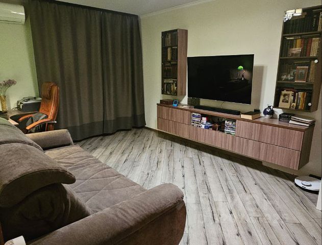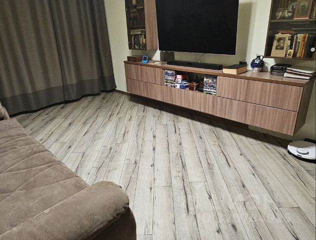 К продаже предлагается просторная 1 комнатная квартира на 21 этаже от застройщика ЛСР. Вашу безопасность обеспечивает круглосуточная охрана на закрытой территории ЖК, пост охраны во дворе, видеонаблюдение по периметру дома, в парадной установлены 3 современных и надежных лифта wellmaks (2 пассажирско-грузовых и 1 пассажирский). В доме нет студий, что избавит Вас от большого количества арендаторов в парадной. Всего 6 квартир на этаже (по 3 квартиры левой и правой секция отделенных длинным коридором). Очень вежливые и спокойные соседи. Общая площадь квартиры 38,2 кв.м с большими правильной прямоугольной формы комнатой 20 кв.м и кухней 10,2 кв.м. В квартире есть все для комфортного проживания, установлен премиальный видеодомофон, смонтирован отличный кондиционер создающий комфортный микроклимат в квартире, что особенно важно т.к. в последние годы в СПб очень жаркое лето. Улучшен ремонт от застройщика переклеены обои, уложен качественный немецкий ламинат в комнате, установлена встроенная мебель для хранения одежды и вещей в комнате, произведена отделка балкона кафелем и панелям, проведено освещение на балкон. Диван ASKONA, холодильник LIEBHERR, варочная панель и духовка Whirpool, вытяжка Indesit. Важным преимуществом ЖК является отсутствие проблем с парковкой машины. Оставить автомобиль можно как на закрытой территории внутри дома (въезд по индивидуальному брелку) так и на внешней большой оборудованной парковке выйти на которую можно прямо из Вашей парадной. Квартира находится в самой удобной в данном ЖК парадной, которая имеет выходы на 2 стороны во двор и на улицу. Широкий выбор общественного транспорта: автобусы, трамваи. До метро пр. Большевиков 15-20 мин. пешком. На транспорте за 5-15 минут можно доехать до метро. Один совершеннолетний собственник, в собственности более 5 лет. обременения отсутствуют. Подходит под ипотеку. Небольшая квартплата, например, за летние месяцы всего лишь в районе -3200 р. очень теплая квартира, редко надо включать батареи даже зимой. АГЕНТ ЕСТЬ!