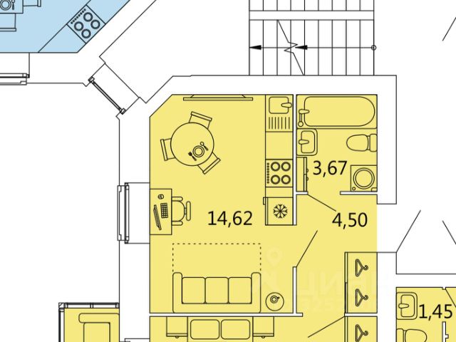1-к квартира, 35,4 м. Этаж 5-й, не последний.