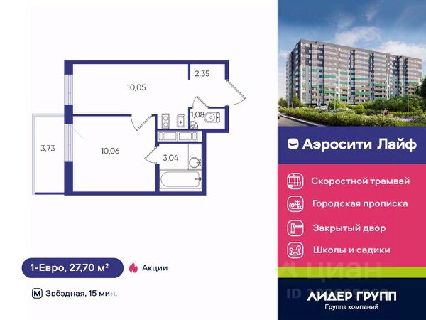 В ЖК Аэросити Life запроектировано 491 квартир с полной отделкой более 2/3 из которых планировки семейного формата: одно двух и трехкомнатные. В секциях от 7 до 11 квартир на этаже, среди которых особое место занимают семейные трехкомнатные евроформата с просторными кухнямигостиными и двумя полноценными ванными комнатами, одна из которых с естественным светом. В большинстве квартир предусмотрены функциональные балконы или лоджии площадью более 4х квадратных метров с панорамным остеклением.